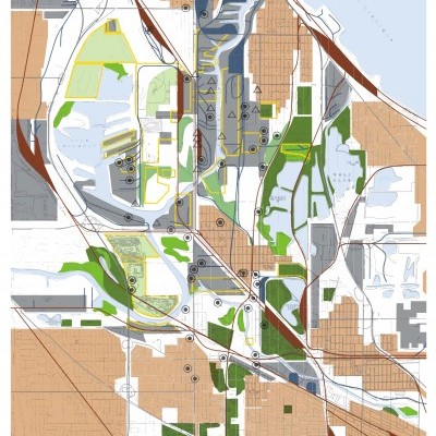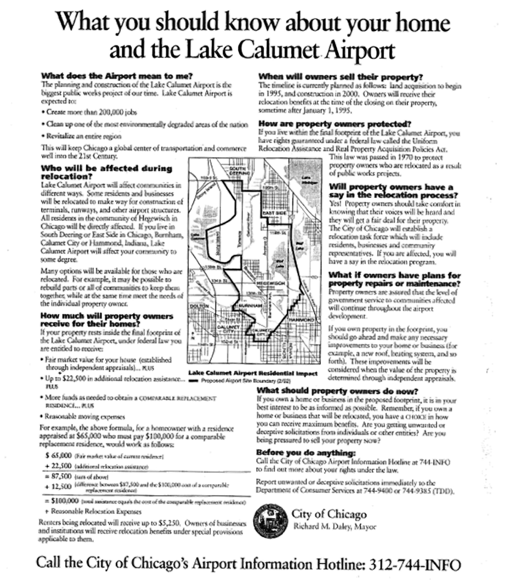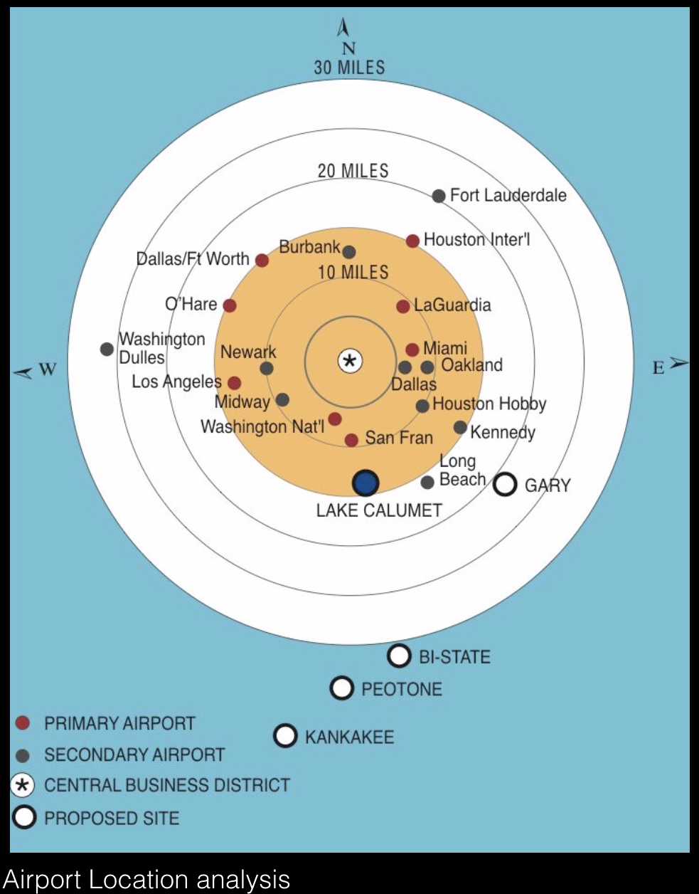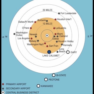 This proposal was developed in the early 1990s by the City of Chicago for a new airport on the city’s southeast side, an area long abandoned by industry and in decline. The goal for this massive 10,000 acre plan was for brownfield redevelopment, re-use of existing infrastructure, and provide vitality to an area overlooked for decades.