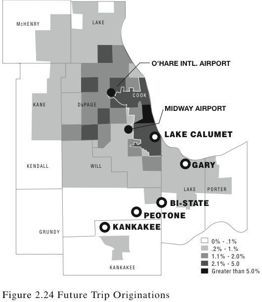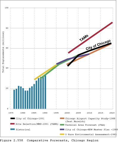 Study was done of how the overall region would develop over the next 25 years with both an urban infill airport, contrasted with a greenfield site. The design was based on two forecasts, a conventional optimistic one and another significantly more conservative.