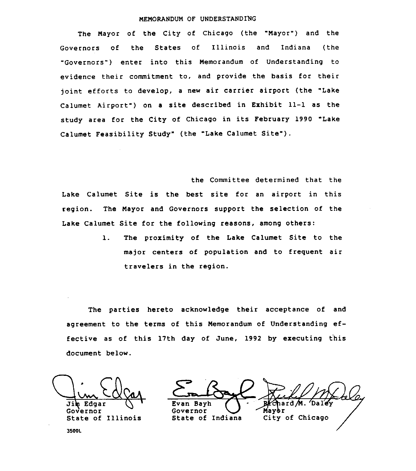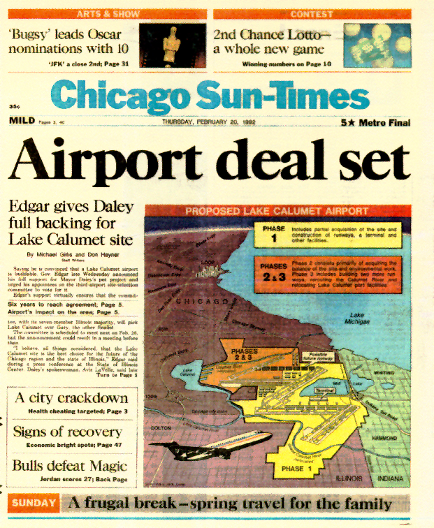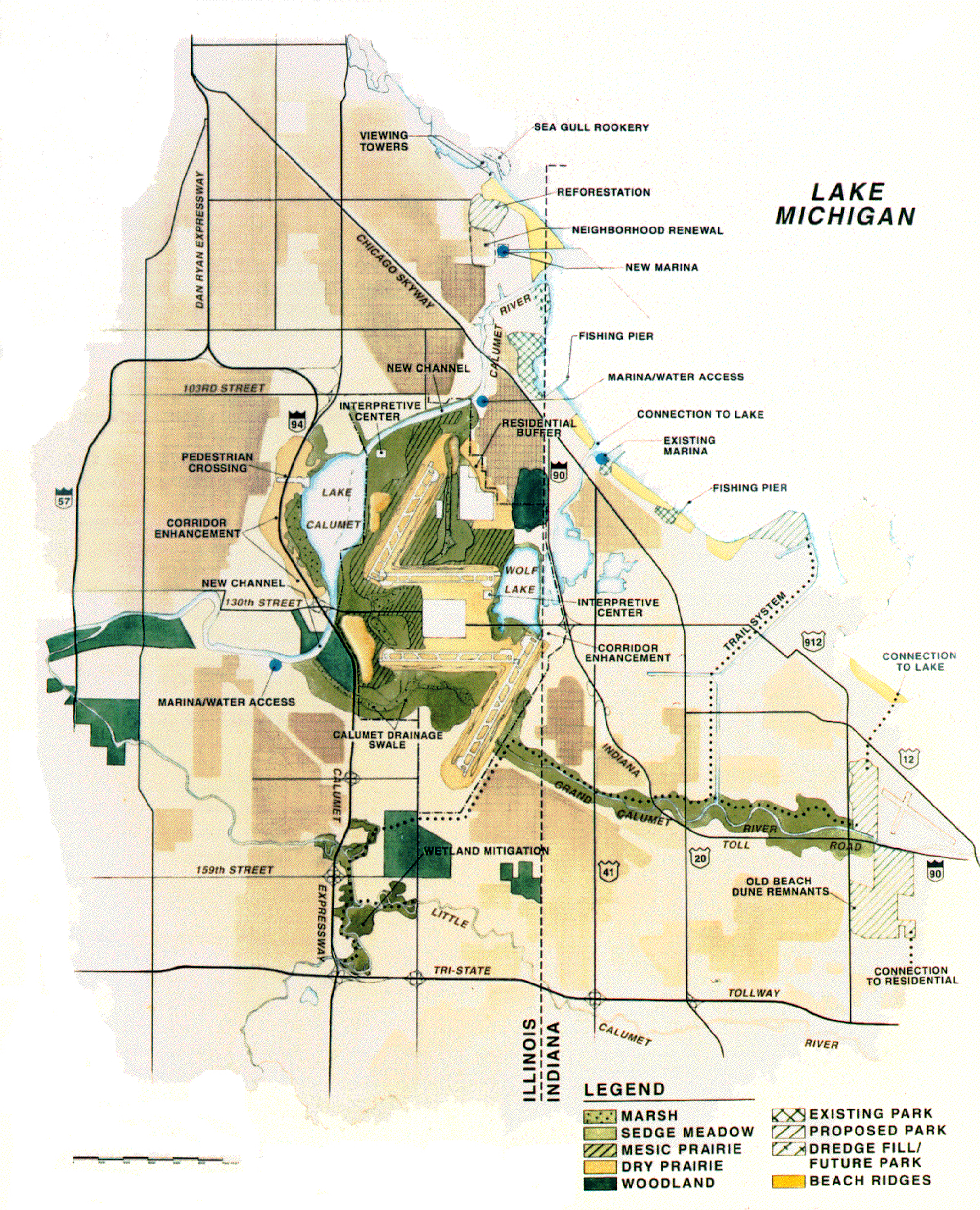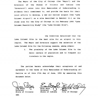 The complex project involved multiple political and geographic boundaries. It was ultimately endorsed by key political figures in Chicago, and the states of Illinois and Indiana. A memorandum of agreement was reached between most all parties, but even with key support, the extraordinary proposal was not passed by the Illinois legislature and was subsequently withdrawn.