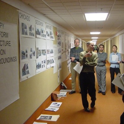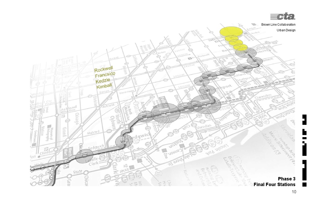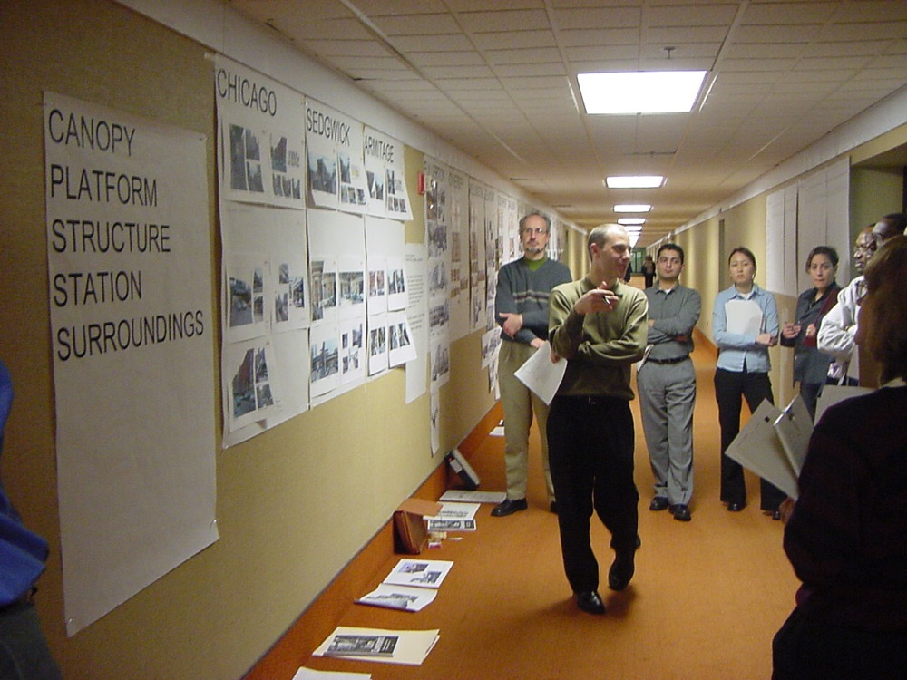 Urban design workshops were held to develop shared goals and understandings, and each of the stations were studied from this perspective. Design guidelines were prepared to guide the work; and Ken Kruckemeyer and Geoff functioned as a design review committee for each of the designs. The workshops were held within CTA headquarters to raise the profile of the design effort.