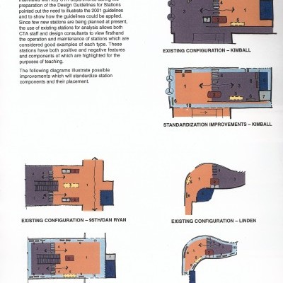 Different design drawings highlighted the issues involved in the stations. While simple in construction, CTA stations involve movements of many people at different times and ways. Study revealed the patterns that needed to be respected and improved in the new designs.