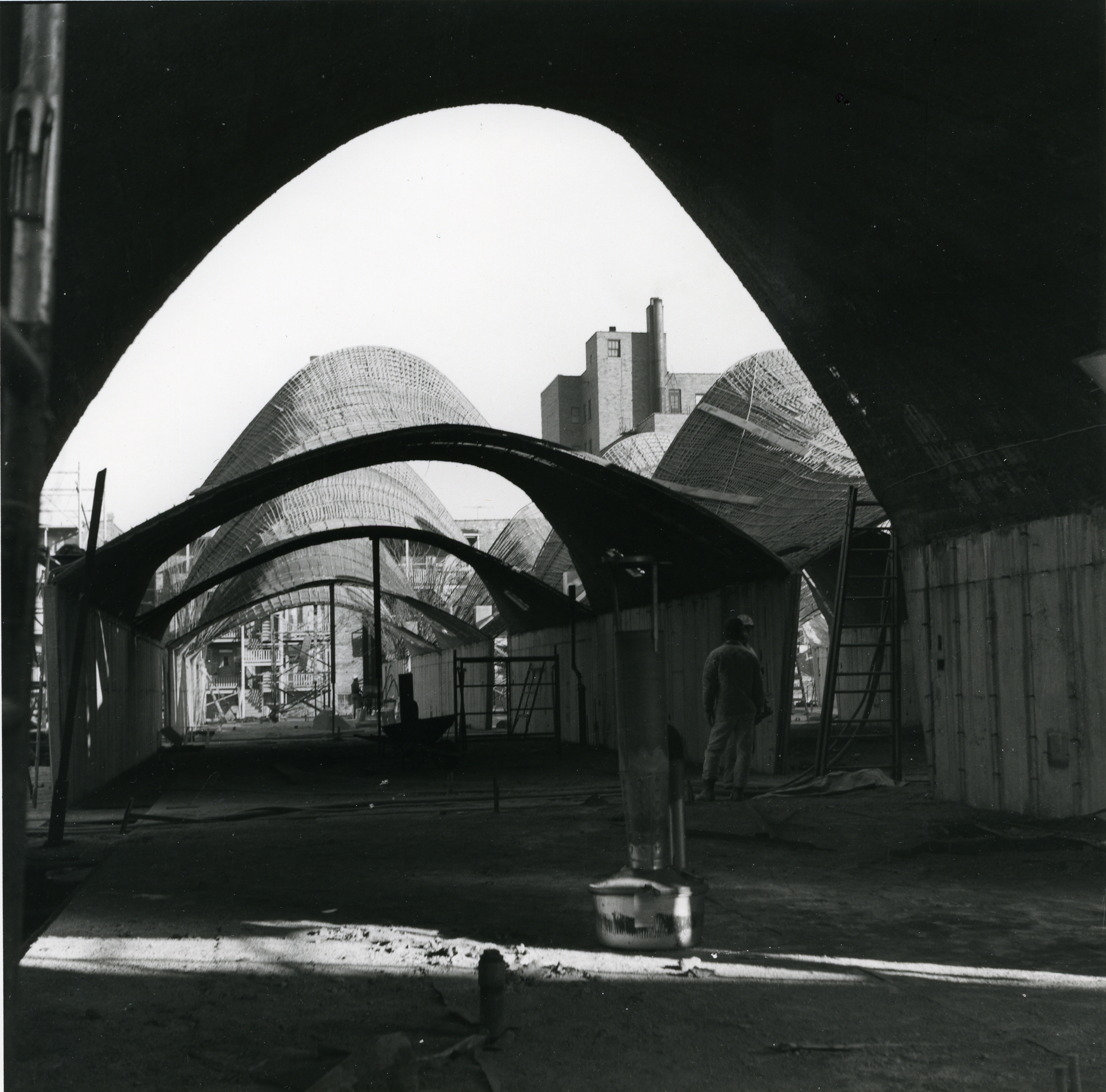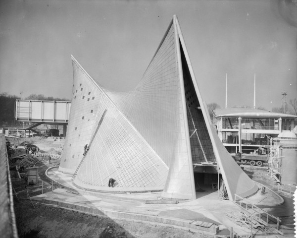 Detail study of the different aspects of special three dimensional buildings included investigation of work by Saarinen and Le Corbusier among others. Buildings of such special shapes was prominent in the 1950s and 1960s, but then went dormant until the 1990s with digital modeling enabled study and construction of complex shapes. At left is an image from Saarinen’s TWA Terminal in New York and Le Corbusier’s and Xenakis’ 1959 Brussels Pavilion for Philips.