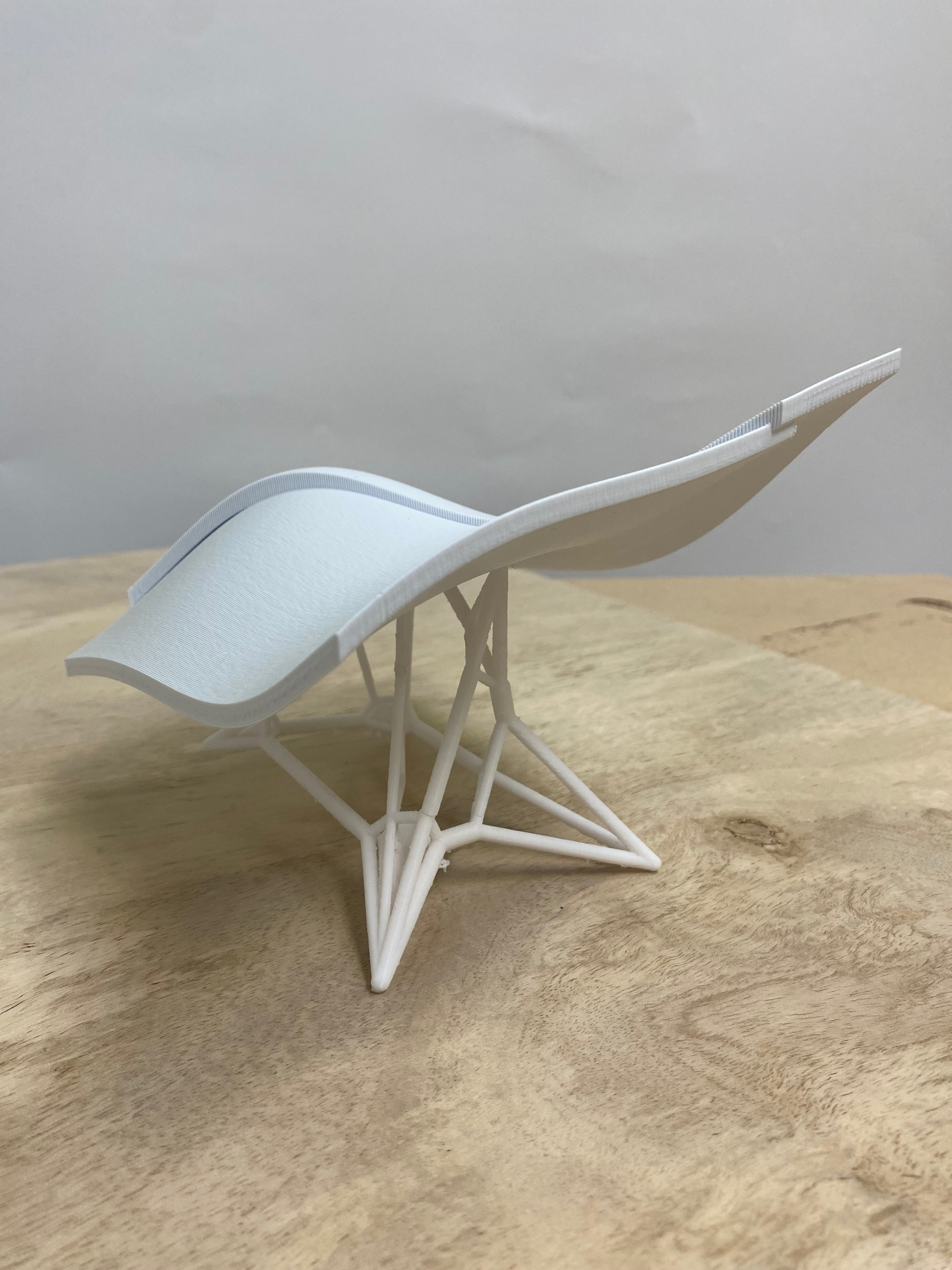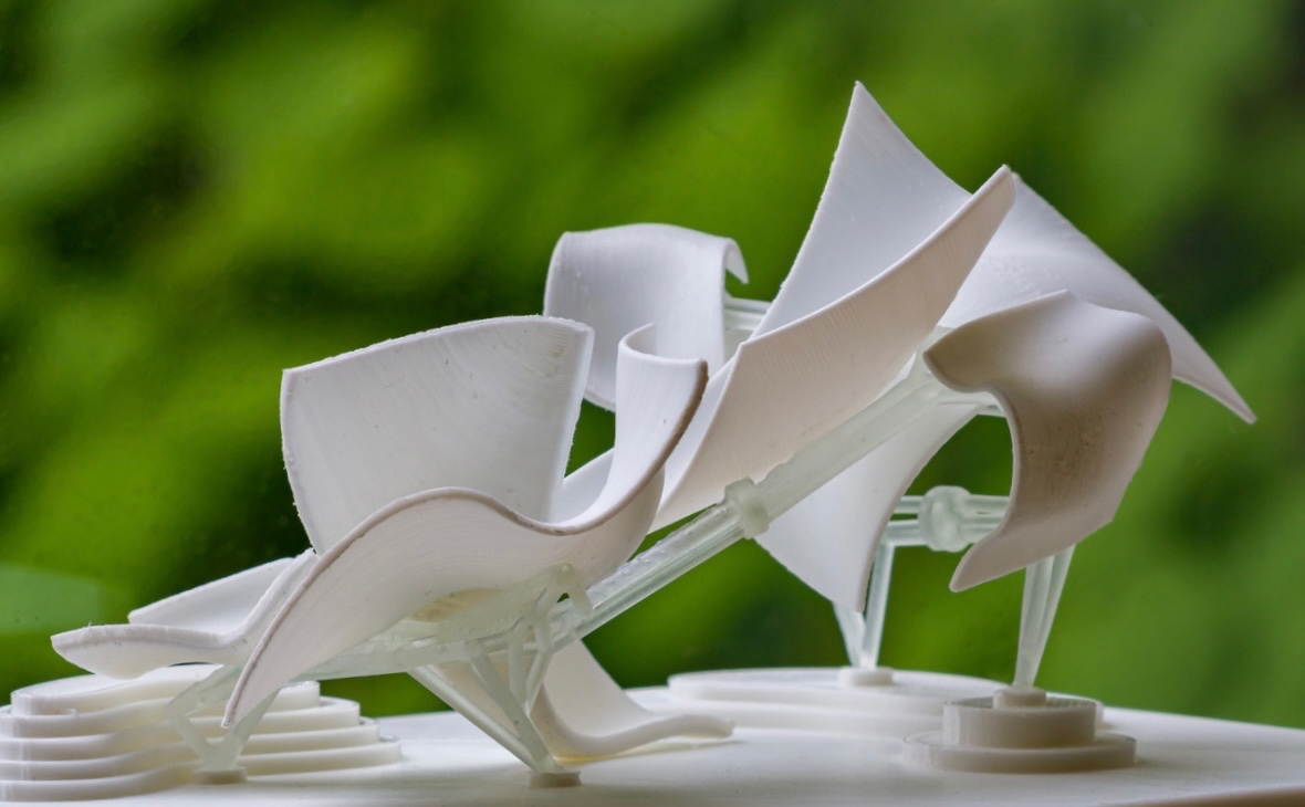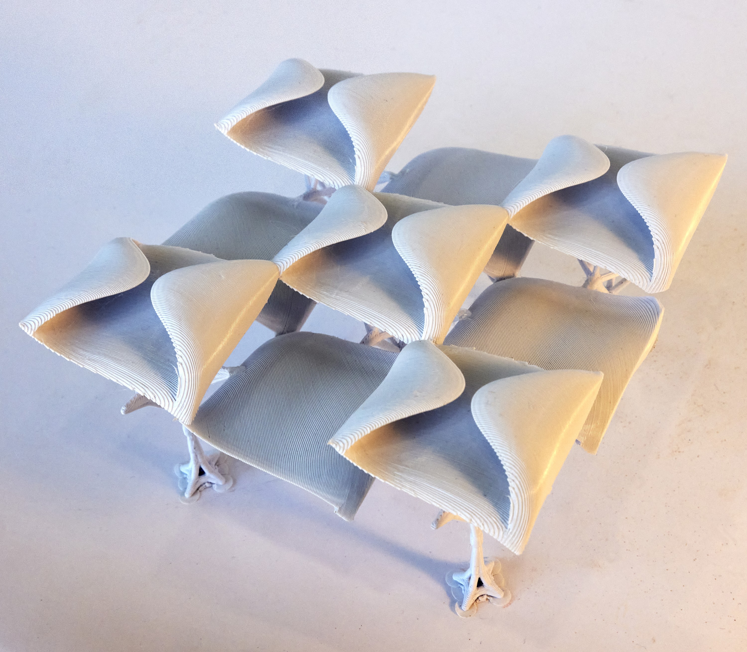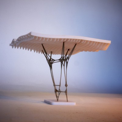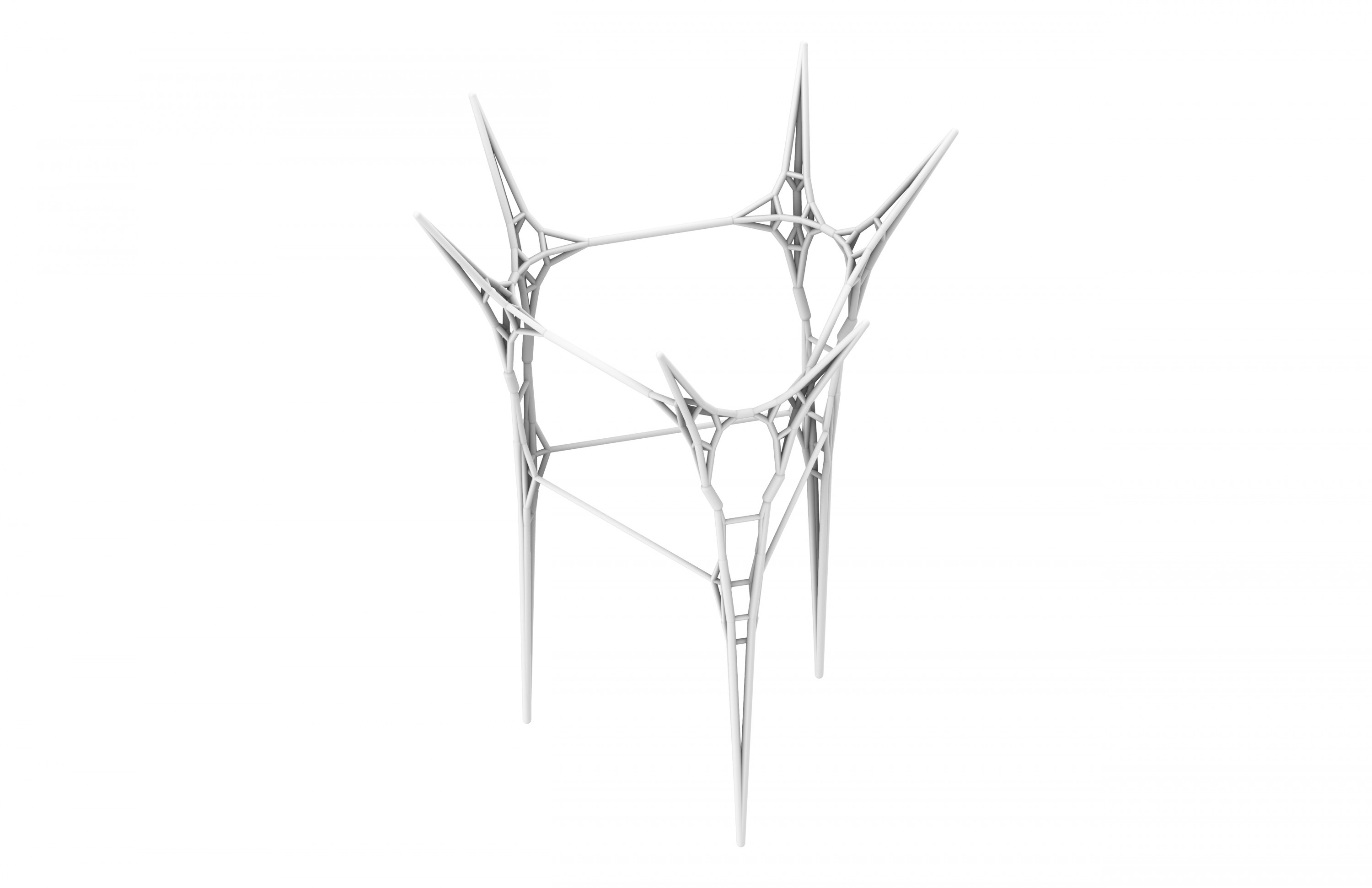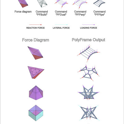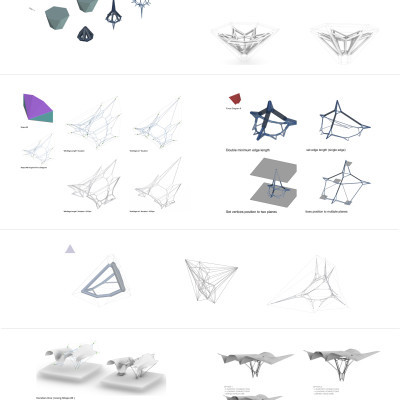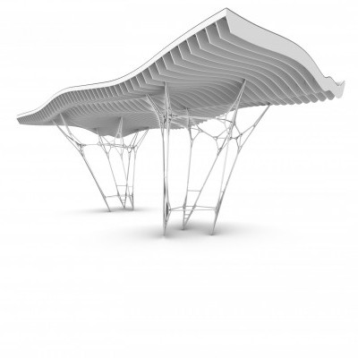 The integration of complex form and structure has been an issue for architecture for many years. In this work, complex shapes, largely curved roof planes, are supported by “tree-like” structures, developed using advanced structural software. Hinted at by Maxwell in the 1860s, it has only been since about 2010 that graphic statics, a particular way of resolving structure, has been feasible in three dimensions. Using closed polygons as representing forces in equilibrium, it is possible to design the supports at a very high level of efficiency, in different materials, and very minimal dimensions. This work was an exercise in connecting both the complex shapes and the sophisticated structural answers, to extend the possibilities for architecture using new methodologies.