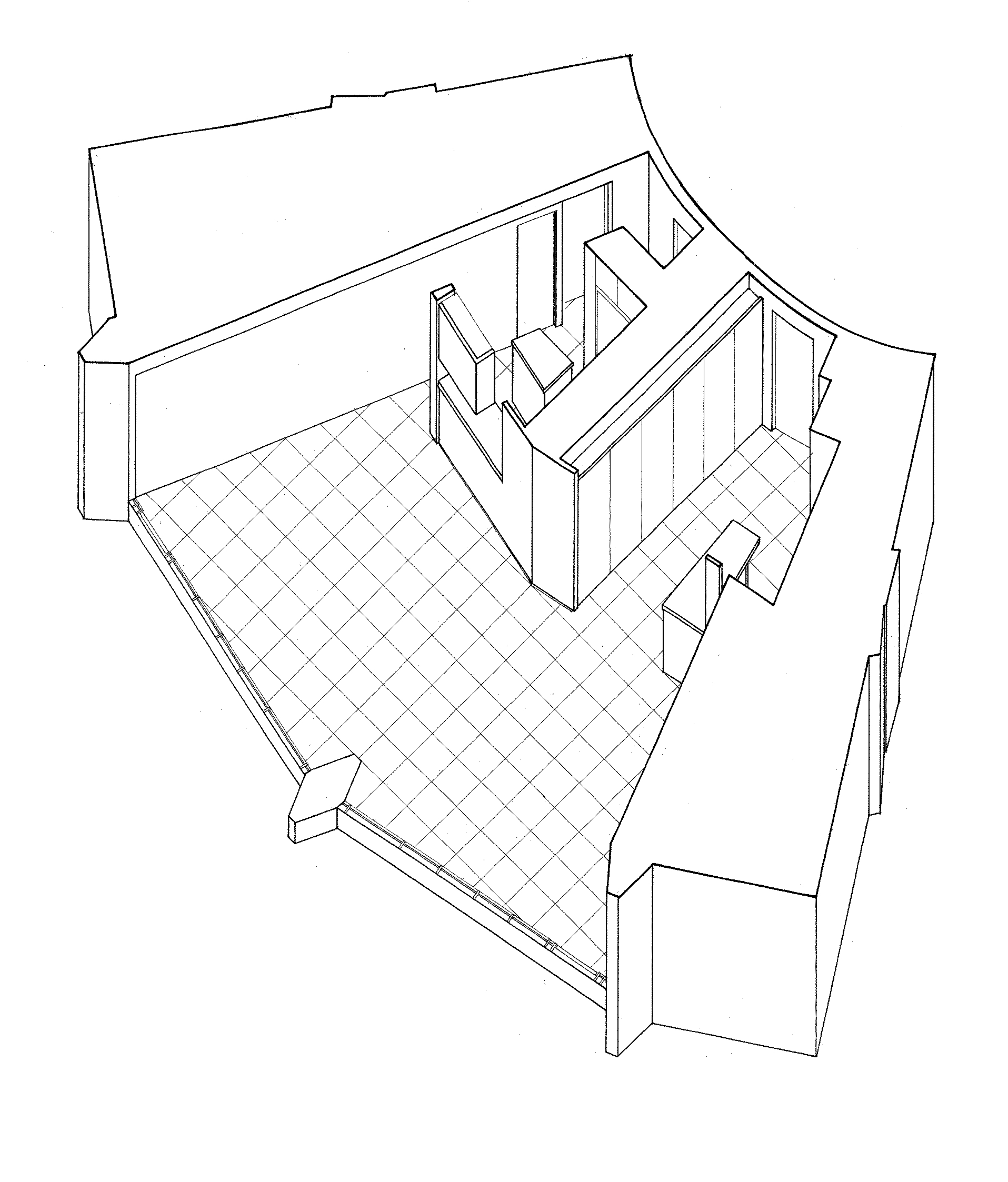 Corners were opened up where possible, to give a feeling of expansion to the space. The eye always has somewhere more to see.