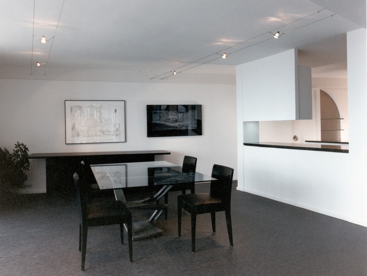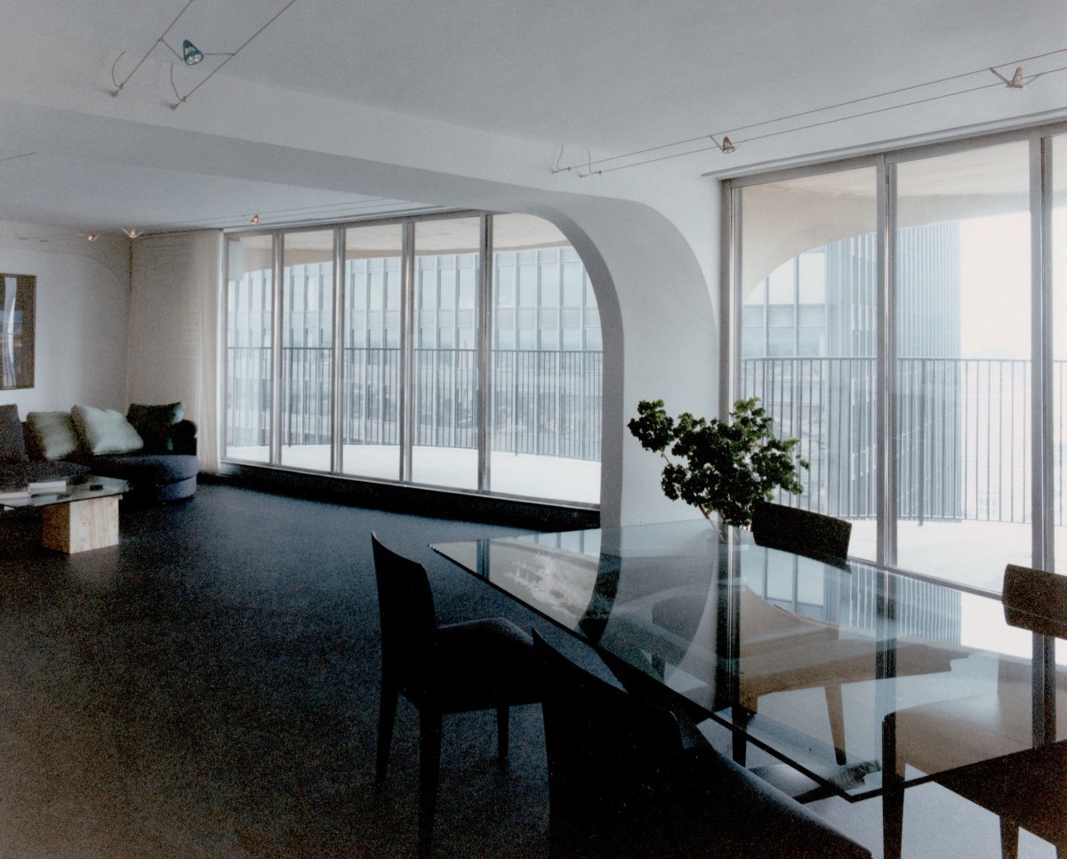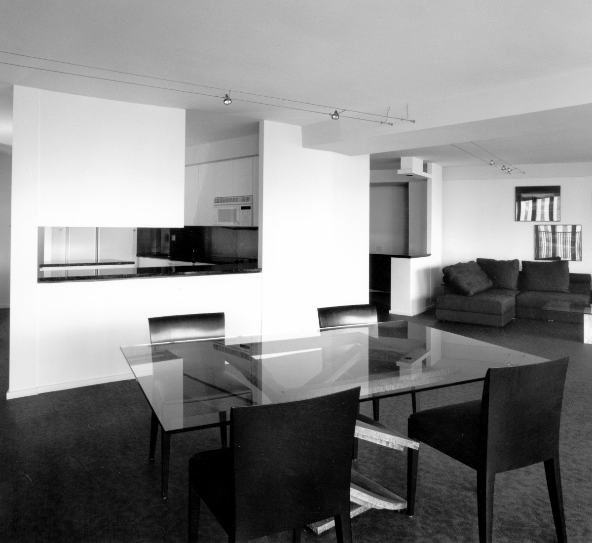The project was to combine two apartments in Marina City to make a larger unit for a sophisticated couple, who wanted “loft-living” but loved Marina City.