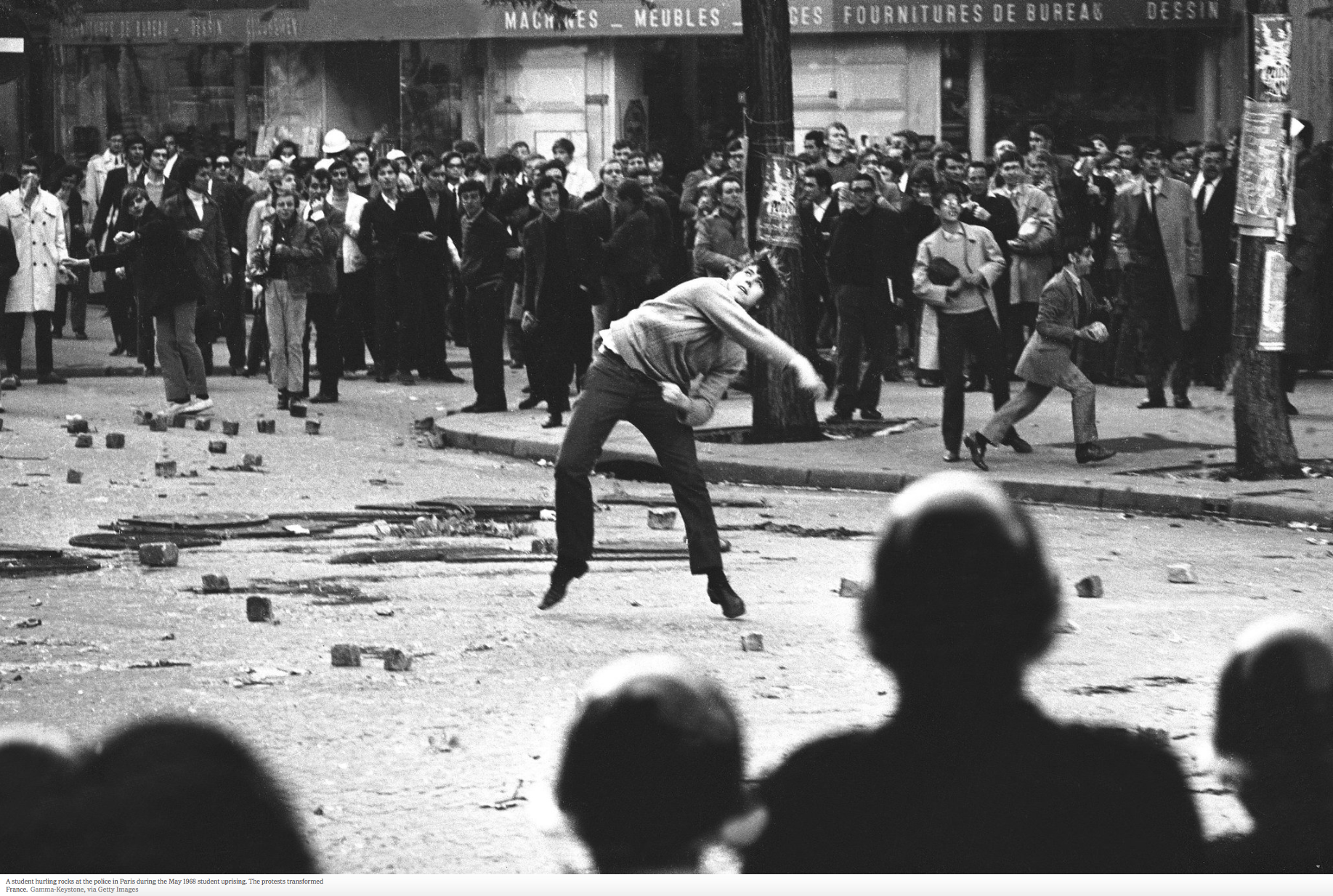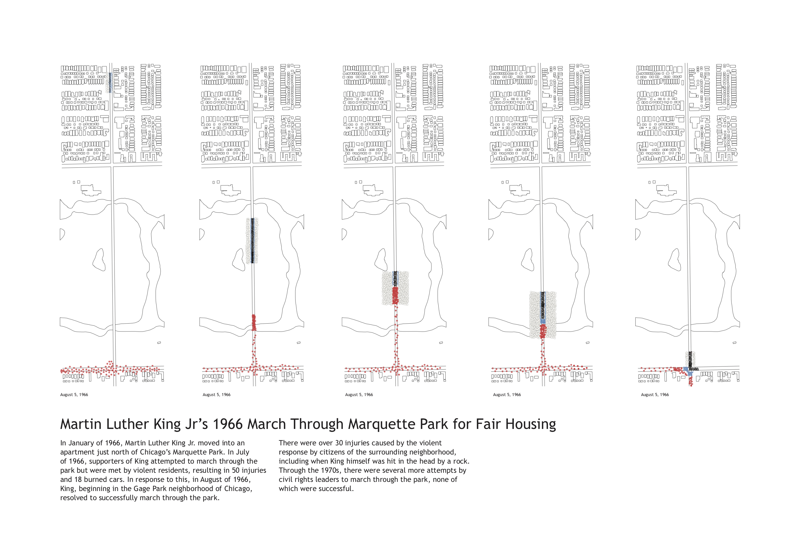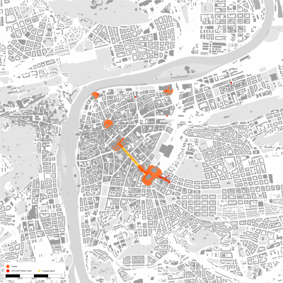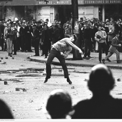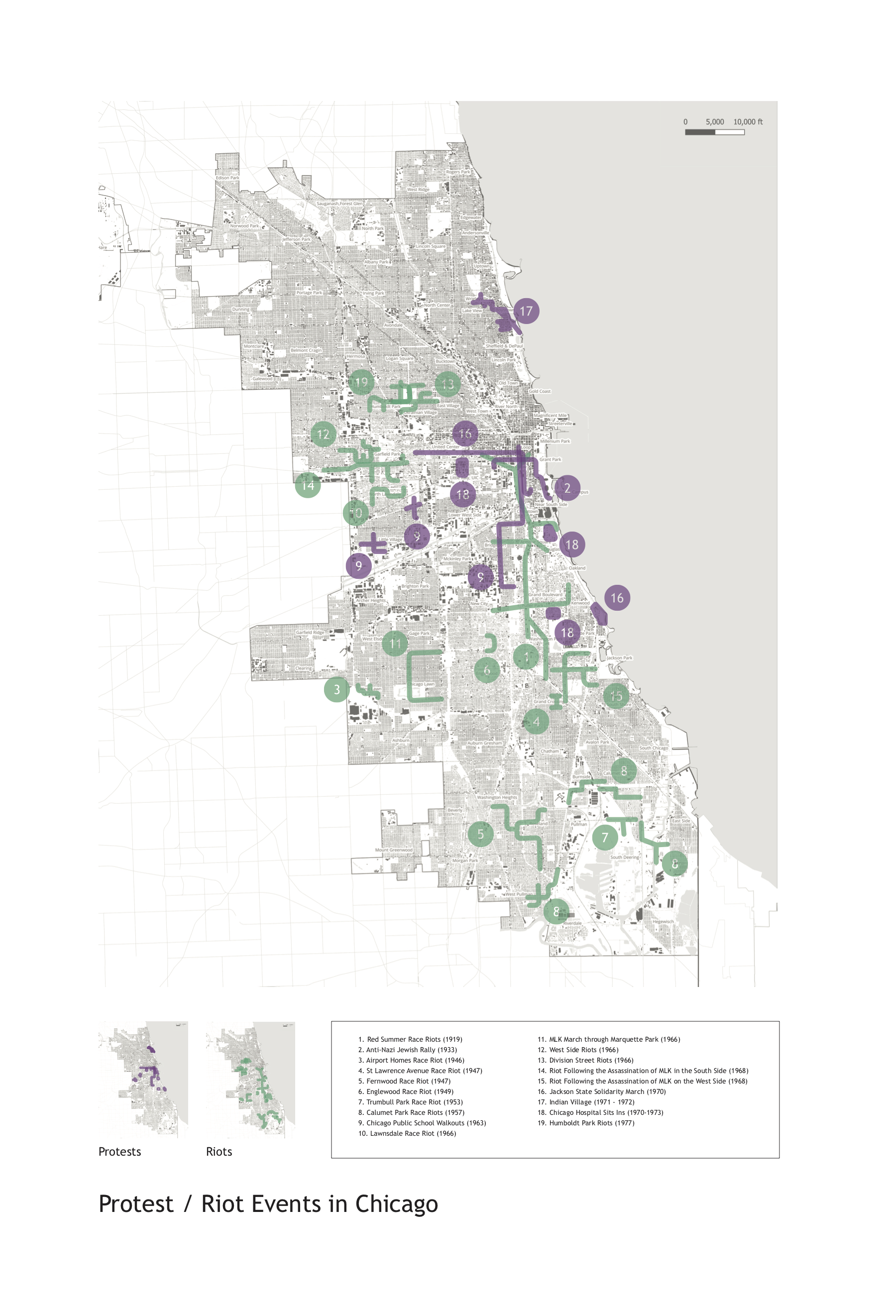 Looking at how people use cities, focus on dramatic moments. Protests are when public space is taken over, and people collect and their movements spatial. The phenomenon is temporary and transient, poignant and with long memories. Study has been done of protests at different times and places. Most are from the 1960s, mostly in 1968. Mapping was derived from careful study of hundreds of photographs, and generated as a representation of what happened.