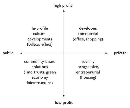 Two explanatory diagrams are shown below. The first outlines explorations - public vs. private, and high vs. low profit.