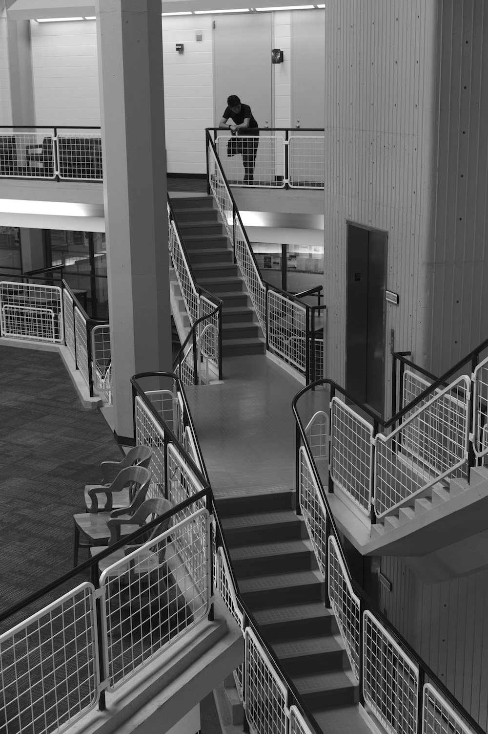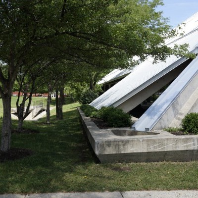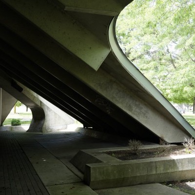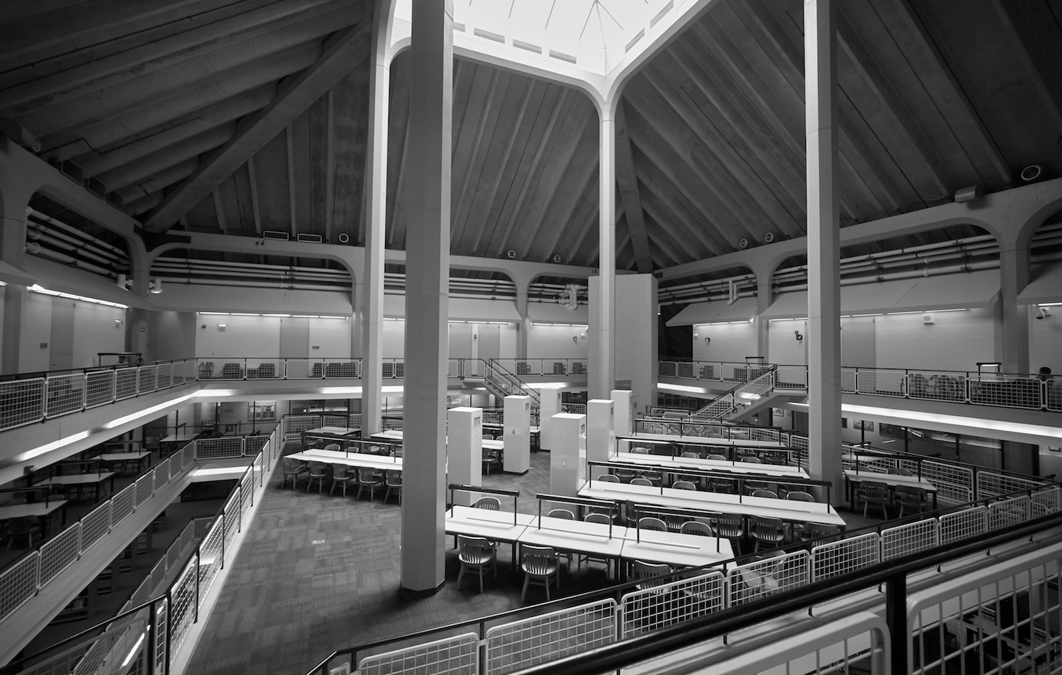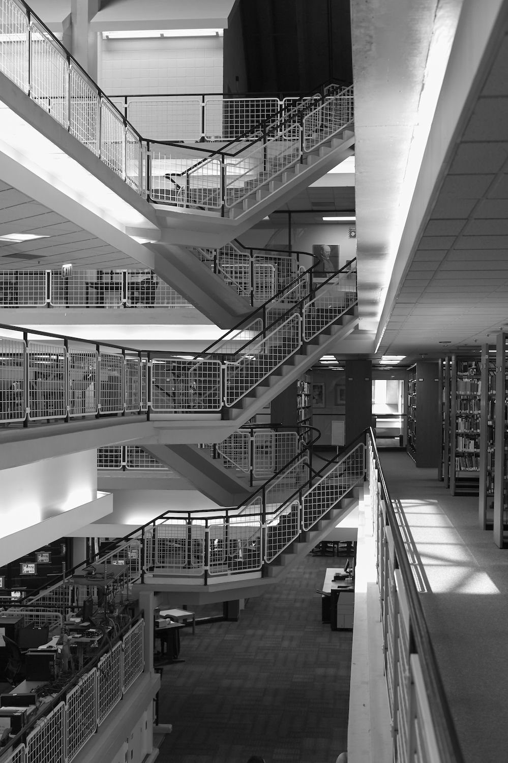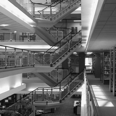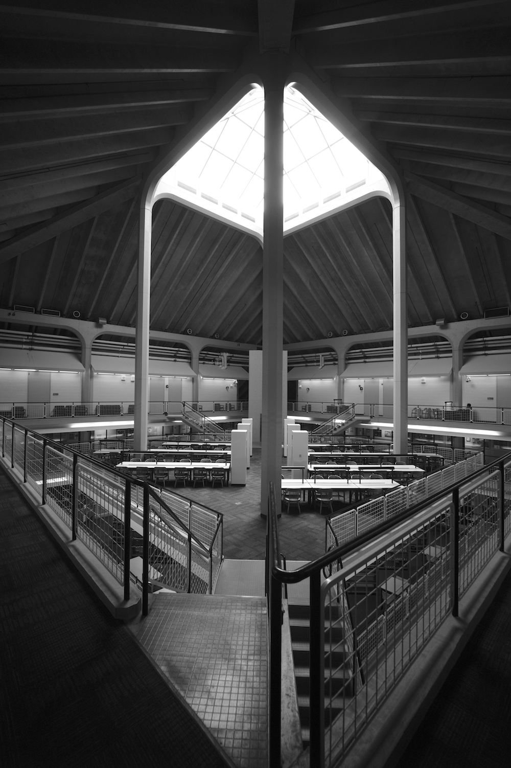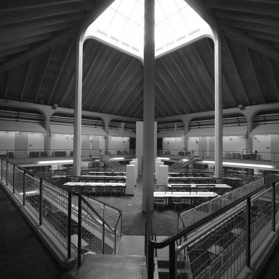 On its upper level is a large open reading area, a quiet place for study. The project was the last major work of the office of Bertrand Goldberg Associates, where Geoff served as project architect and member of the design team.